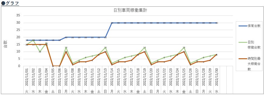 ・「車両の稼働状況見える化」のグラフ例(稼働日別)