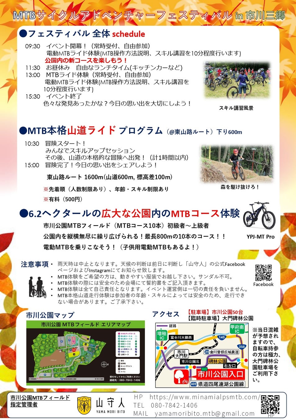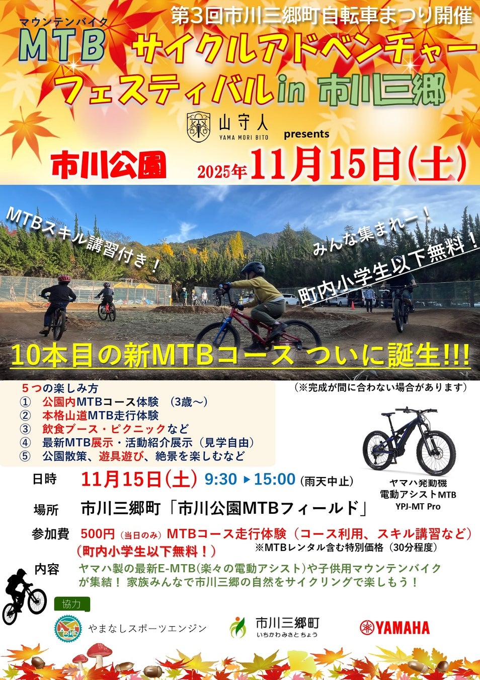 山梨県市川三郷町「市川公園MTBフィールド」にて第3回サイクルアドベンチャーフェスティバルを開催!ファミリーや初心者がMTB体験!