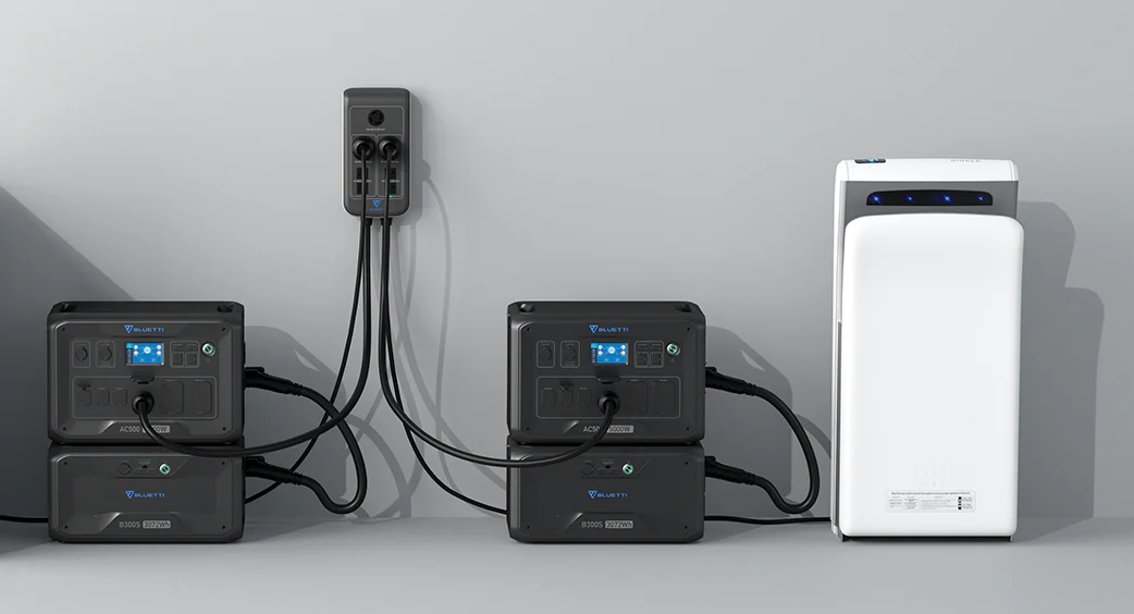 ※B300Sを2台以上組み合わせると、1台のポータブル電源で6,144Whの製品を製造するよりも小型になります。