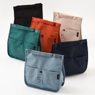 収納量に合わせて薄くたためる、サイドスナップボタン仕様の拡張機能付きバッグインバッグ。
