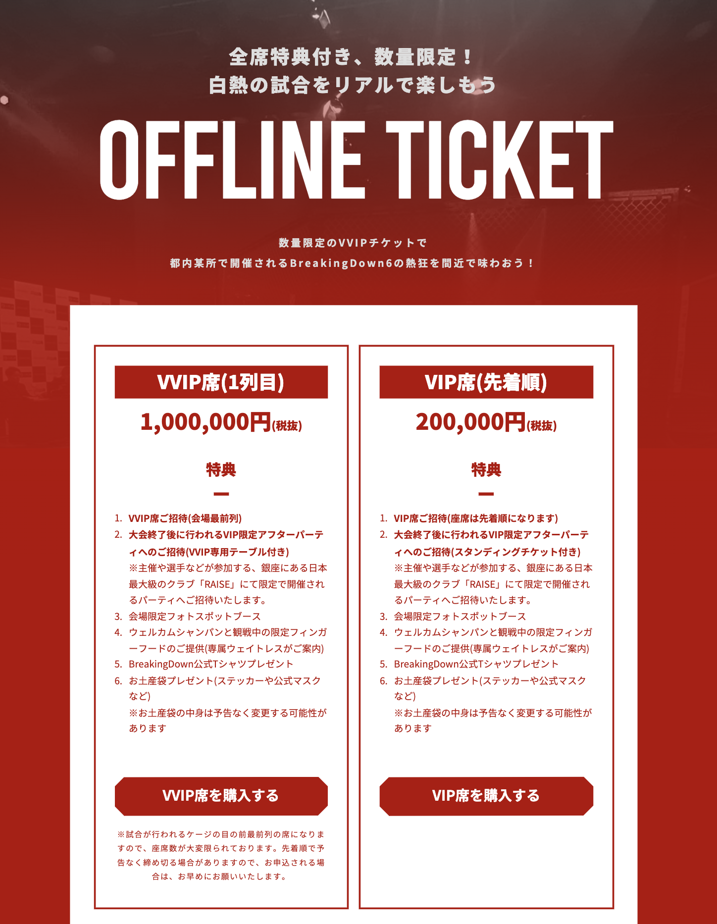 VVIP・VIPオフライン観戦チケット:https://breakingdown.jp/
