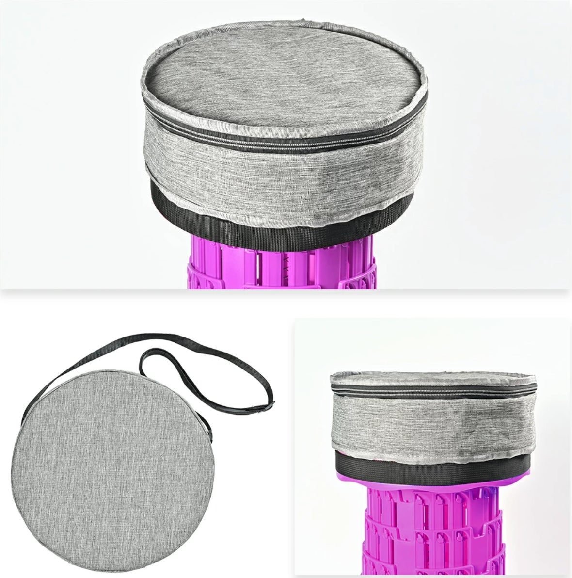 椅子を入れる専用カバーはクッションとしても使えます。内側にあるゴム紐を折りたたみ椅子にひっかけることでズレずに快適。伸縮構造による高さ調整と組み合わせることで“疲れにくい姿勢”をサポートします。