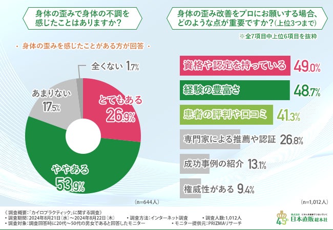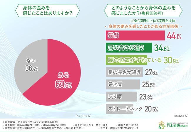 今回の調査結果で、身体の歪みを感じたことがある方の割合や、カイロプラクティックに対するイメージなどが明らかになりました。