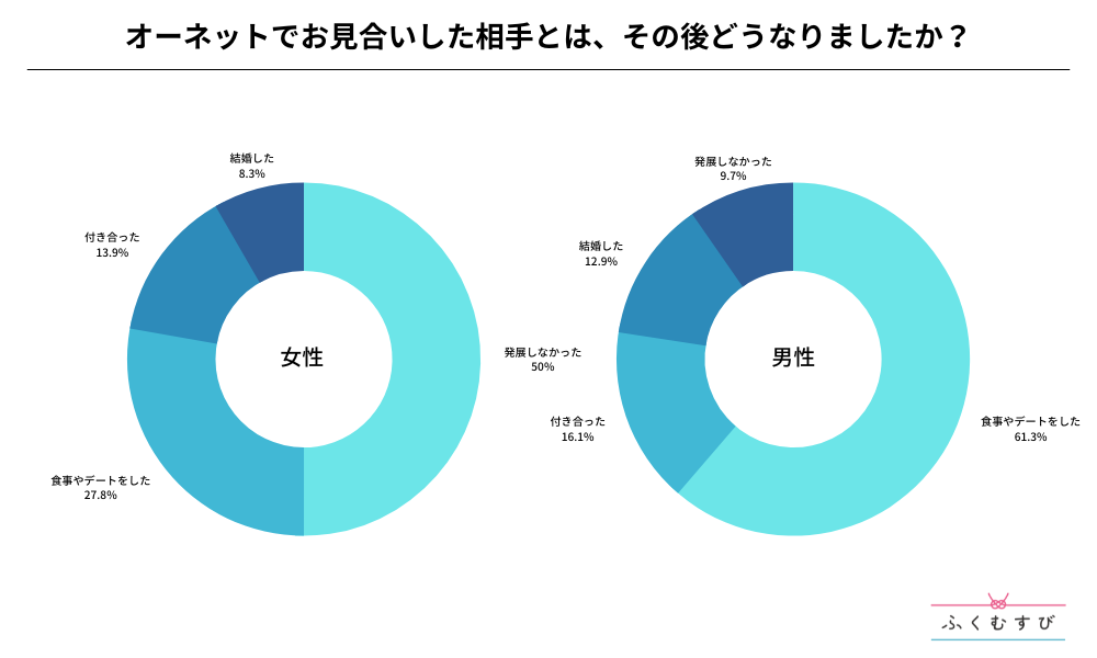 ・オーネットで結婚できた割合は、男性が12.9%、女性が8.3%となりました。