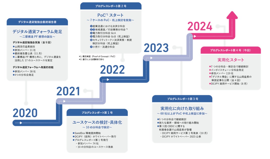 図:DCJPY社会実装に向けたデジタル通貨フォーラムの活動の歩み
