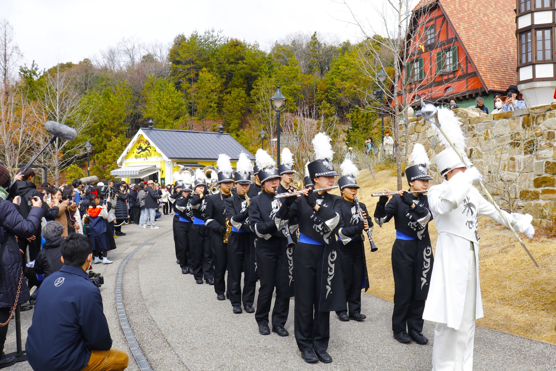 ジブリパークの5つ目のエリアとして誕生した魔女の谷は3月16日(日)、開園から1年を迎えました。ご来園いただく多くの皆様に感謝し、さまざまなイベントを開催する「春のどんどこ祭り」がこの日スタート。その幕開けを飾ったのは「魔女の谷開園1年 マーチングバンド演奏」です。