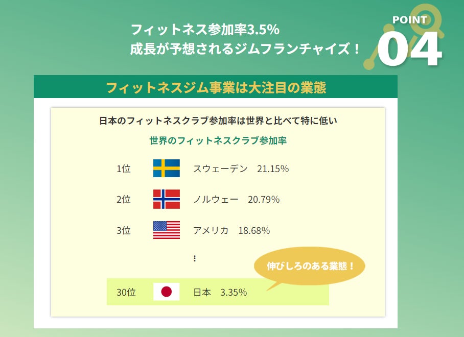 4.フィットネス参加率3.5%で成長が予想されるジムフランチャイズ