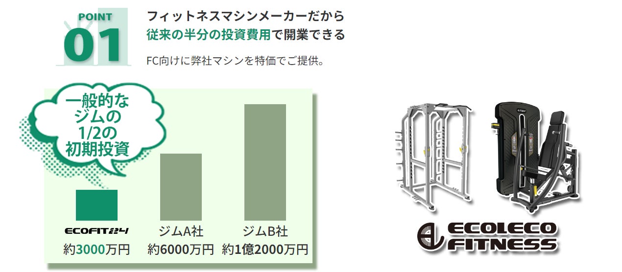 1.フィットネスマシンメーカーだから従来の半分の投資費用で開業できる