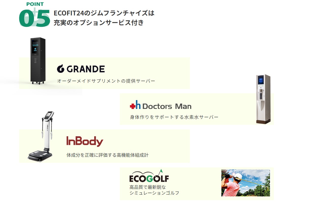 5.ECOFIT24のジムフランチャイズは充実のオプションサービス付き