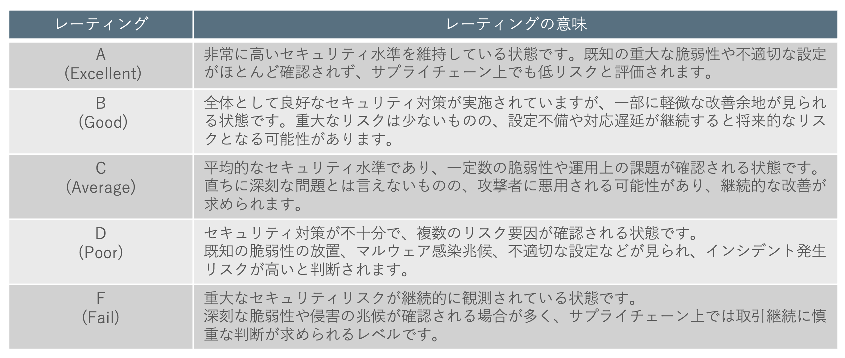 Security Scorecardを用いた外部から観測可能な公開情報・技術的指標に基づく分析 |