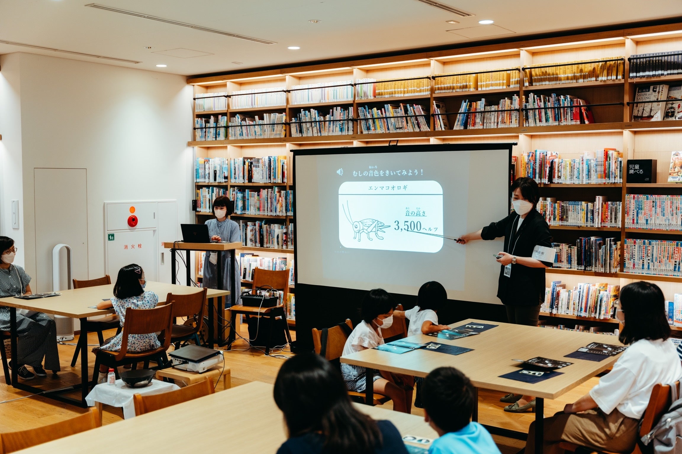 本ワークショップでは、『よるの むしのね ずかん』のデータを使用したワークシートを参加者へ配布し、虫のイラストと鳴き声の音の高さが印刷された「むしのね かるた」を使用してのレクリエーションや、虫はなぜ鳴くのか、どうやって音を出しているのかなど虫の生態を通して、音や耳の仕組みを楽しく学びながら “きこえ”の大切さに気づいてもらう機会となることを目的としています。