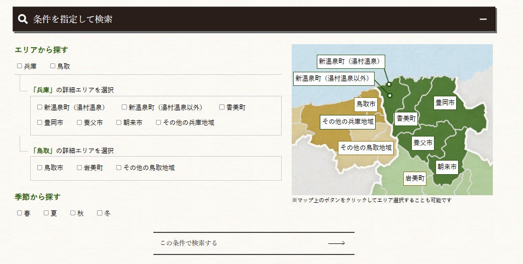 ※エリアや季節はそれぞれ複数選択することや、組み合わせて検索することも可能です。