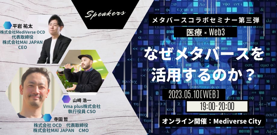 今回は、その集大成としてITや医療という業界の垣根を超えコラボレーションセミナーを実施してきた、Vma plus株式会社と株式会社MediVerse OCDによる『なぜメタバースを活用するのか』をテーマに対談形式のイベントを開催いたします。