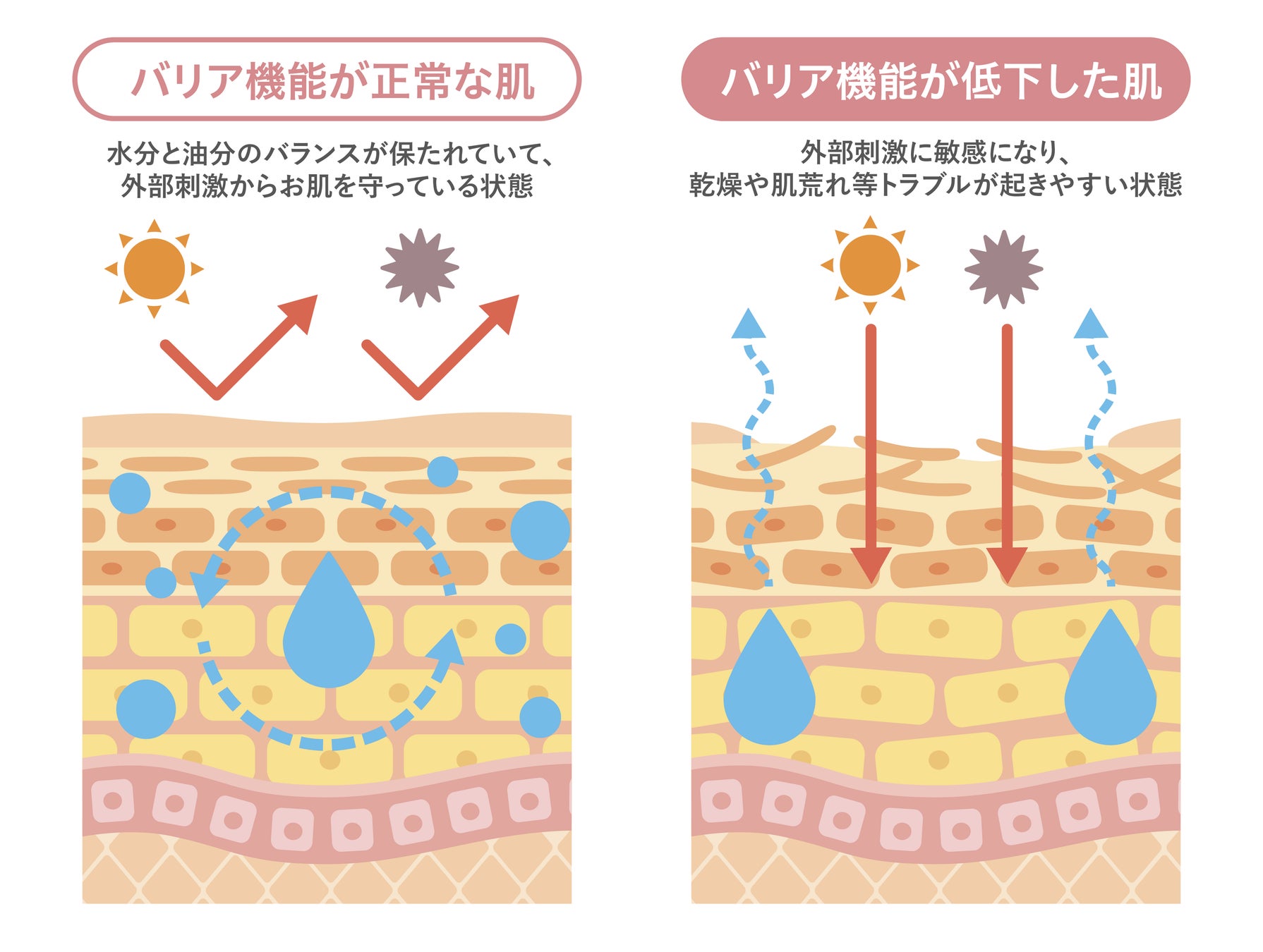 季節の変わり目は寒暖差や湿度の変化によってお肌のバリア機能が低下しやすく、ターンオーバーが乱れたり乾燥したりしやすくなると言われています。また、春の時期は特に、花粉や黄砂・新生活や環境の変化に伴うストレス・自律神経の乱れなどの原因も重なり、刺激に敏感になったお肌が炎症やかゆみなどのトラブルを起こしてしまうことも。