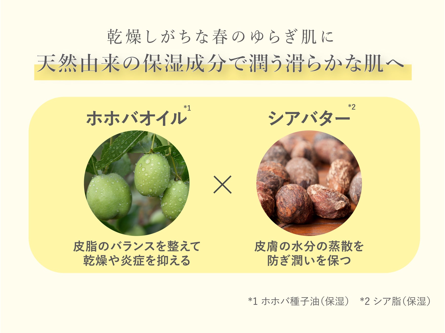 ✓ホホバオイル&シアバター配合、春のゆらぎ肌をやさしくケア