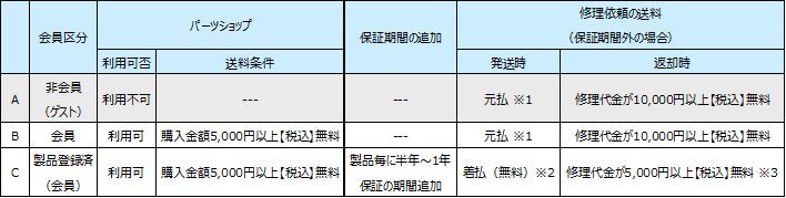 会員登録で保証期間の追加やオンラインパーツショップ利用など