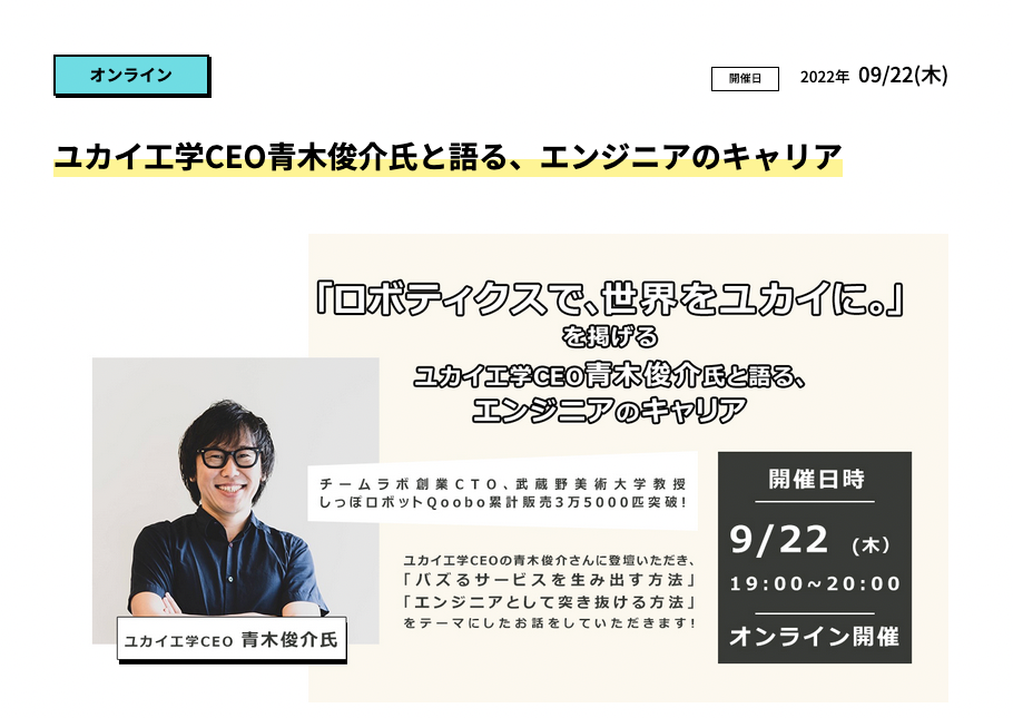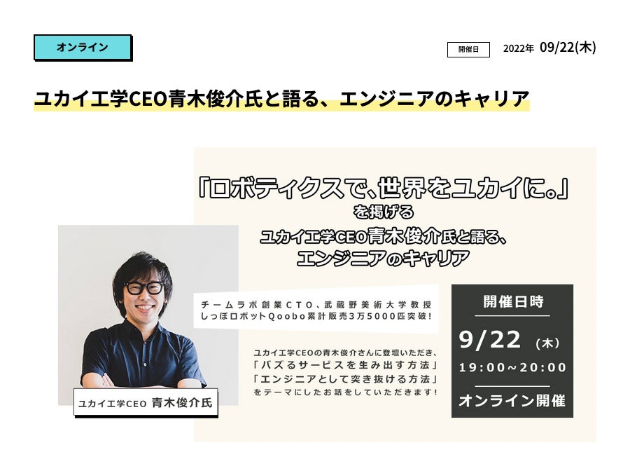 今回は、チームラボ創業者でありユカイ工学CEOの青木俊介さんに登壇いただき、 「バズるサービス」、「エンジニアとして突き抜ける」をテーマにしたお話を伺っていきます!