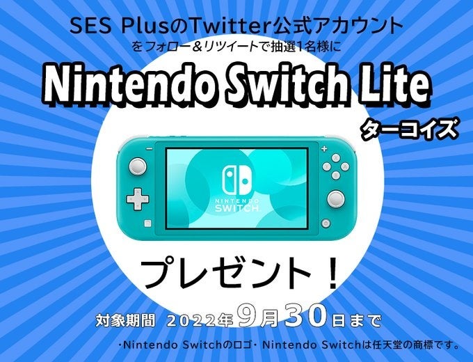SES Plus公式Twitterフォロー・RTで任天堂switch liteが当たるキャンペーンが9月30日迄