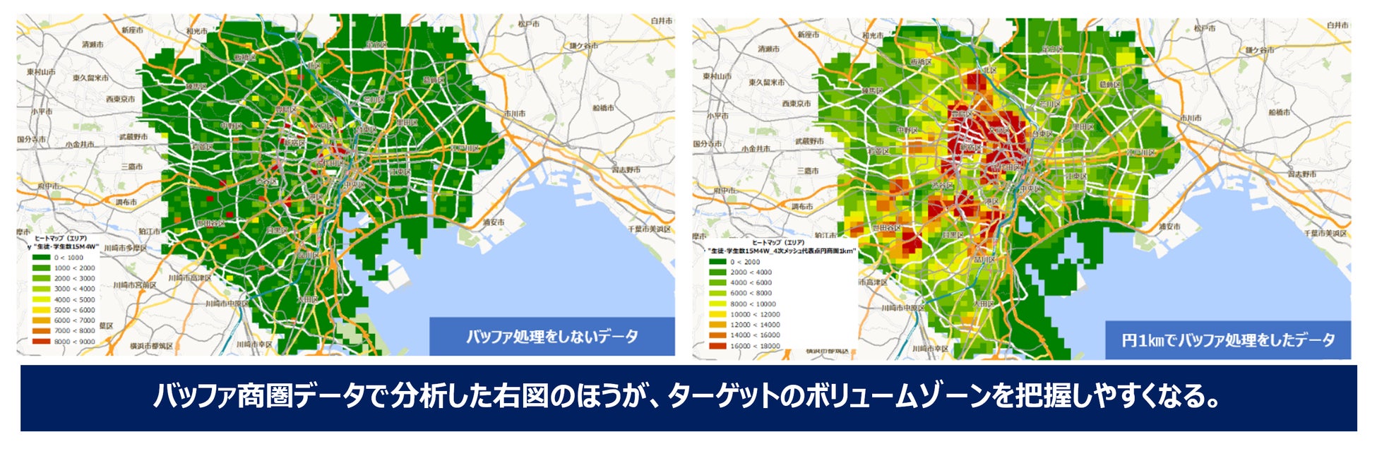 エリアのポテンシャルや需要、傾向を捉えやすくする「バッファ商圏データ」、提供開始