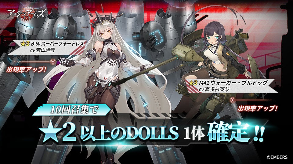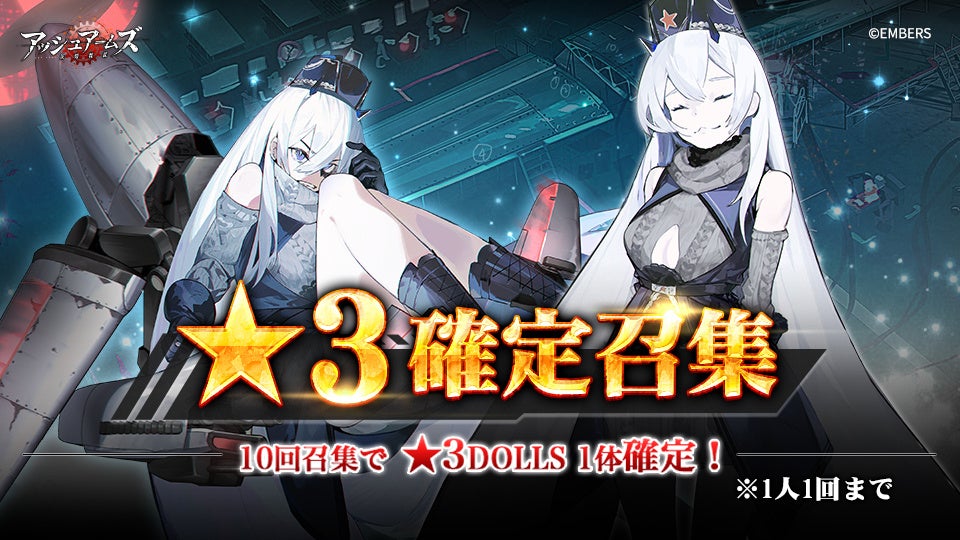 期間中に2回まで購入可能。以下のアイテムを含む:「★3DOLLS指定交換券」×1、「10回召集状」×1、「量産加速許可書」×5
