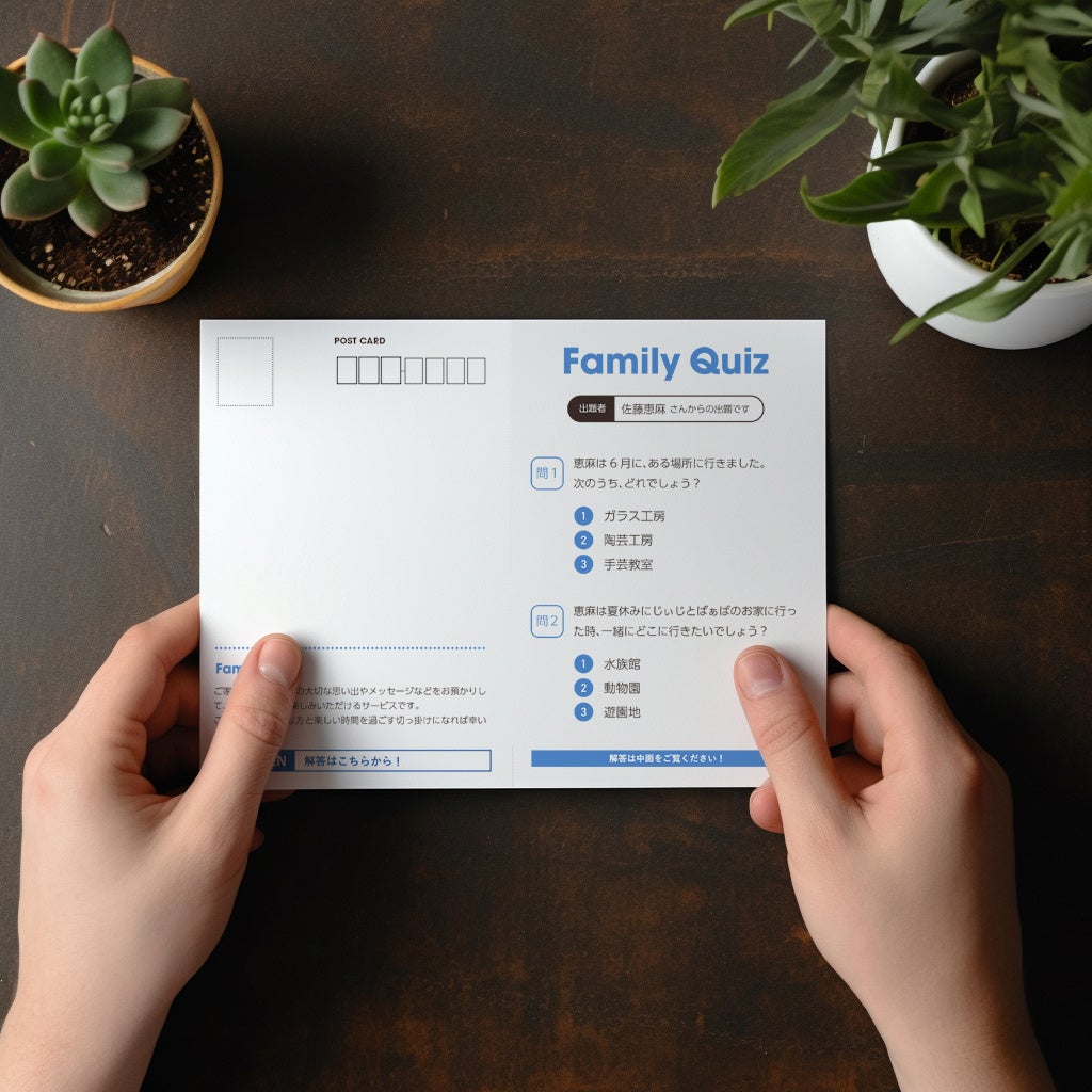大切な写真やメッセージをクイズで送る圧着ハガキサービス