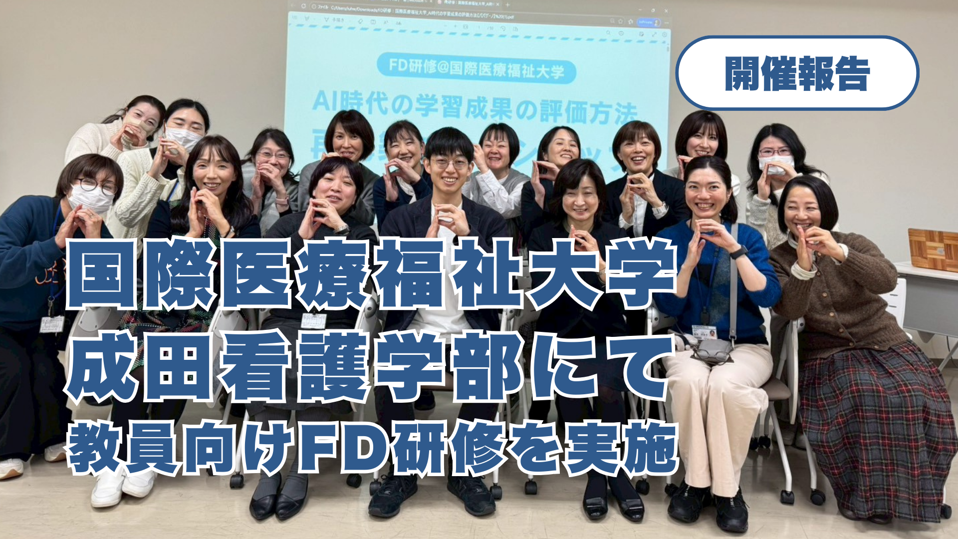 生成AIを活用した就労支援事業やAI支援記録アプリ「AI支援さん」の開発を行う株式会社パパゲーノ(代表取締役:田中康雅、住所:東京都杉並区)は2026年1月8日(木)、国際医療福祉大学 成田看護学部の教員 約30名を対象に、FD(ファカルティ・ディベロップメント)研修「AI時代における学習成果の評価方法の再構築ワークショップ」を実施したことを報告します。