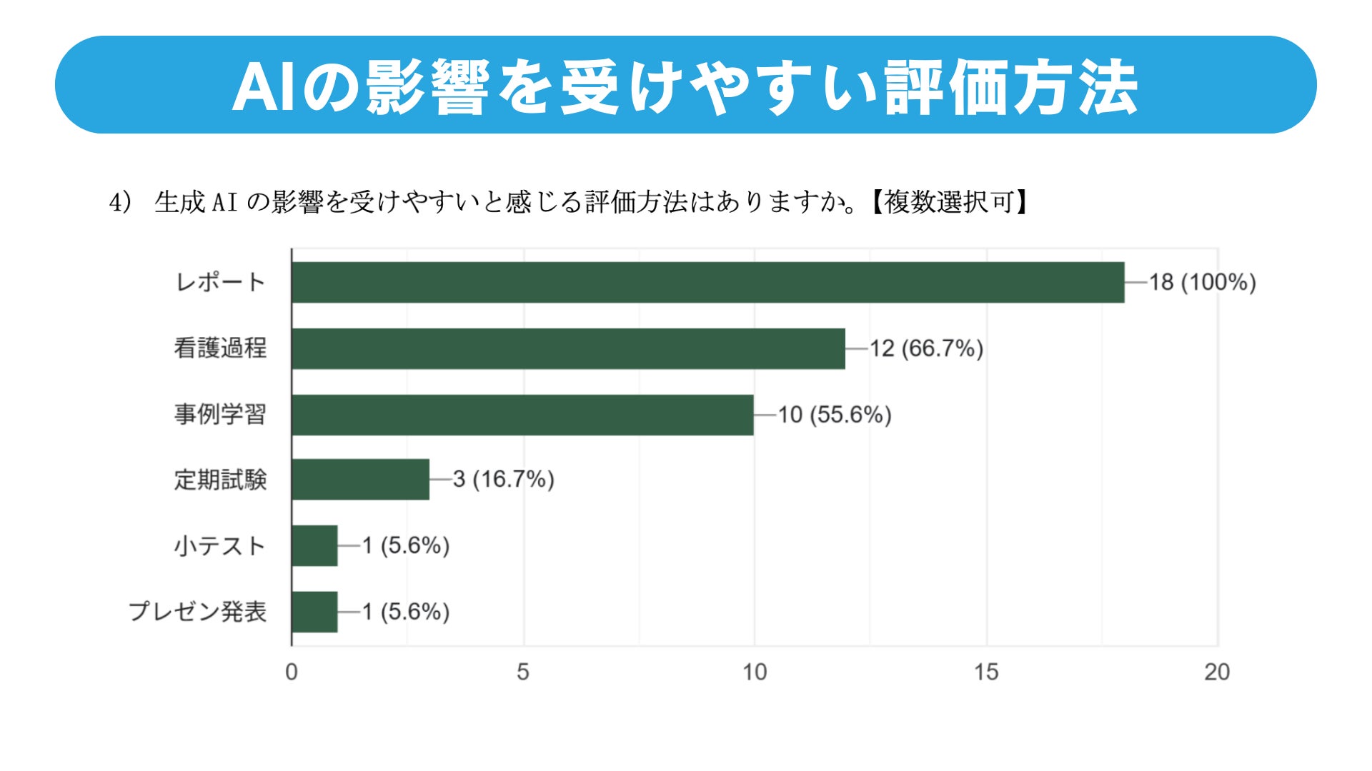 参加者への事前アンケートから見えた看護教員が抱えるAI時代の学生評価の課題を共有しました。