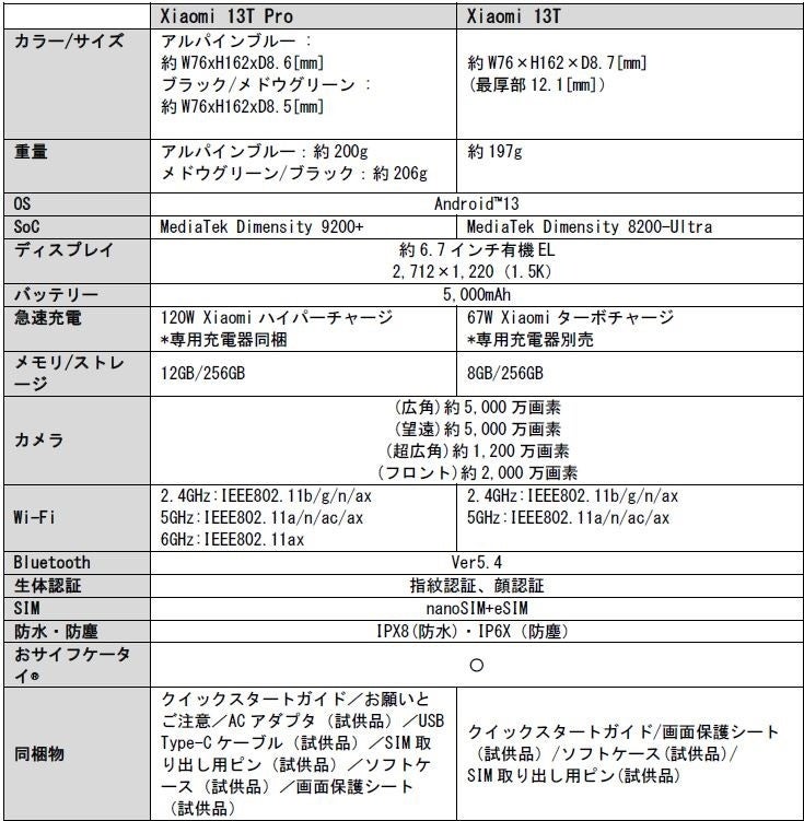 「Xiaomi 13T Pro」/「Xiaomi 13T」をラインナップ