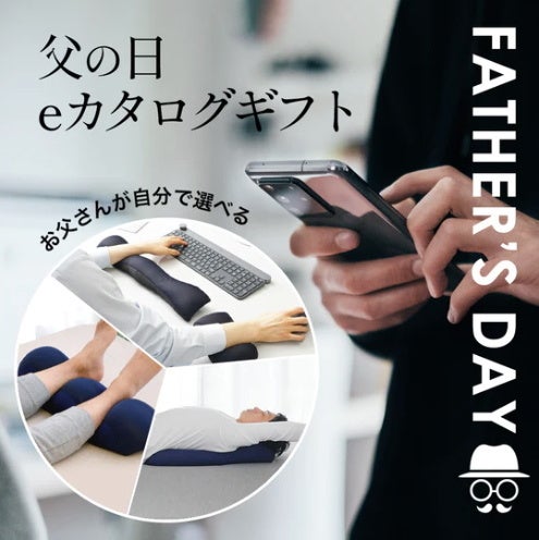 父の日ギフト専用のeカタログギフト登場!プレゼントを受け取るお父さんが好きな商品を選べる、父の日に特化したeカタログギフト、父の日.jpプロデュースで6月14日発売。第一弾として「リラックス枕」から