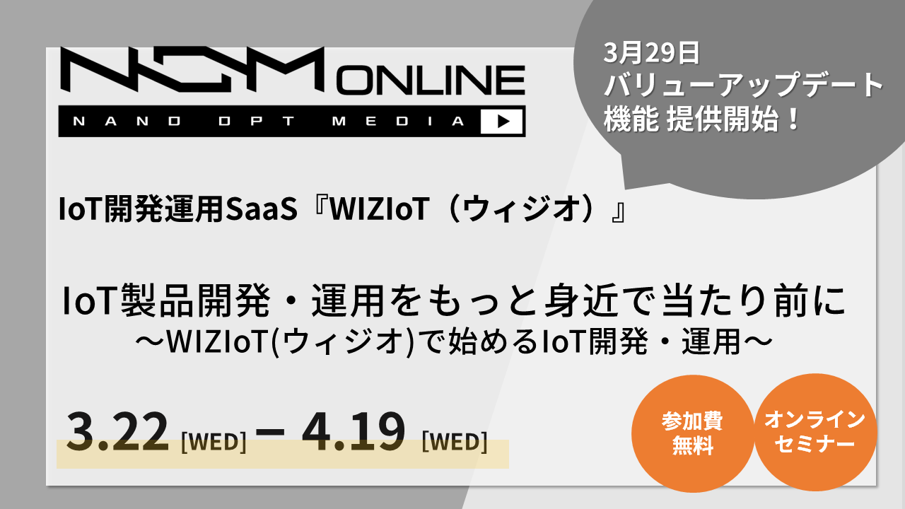 AIoTクラウド、『WIZIoT(ウィジオ)』の3月29日のアップデートに先駆け「NANO OPT Media Online」にて最新情報をセミナーで先行配信