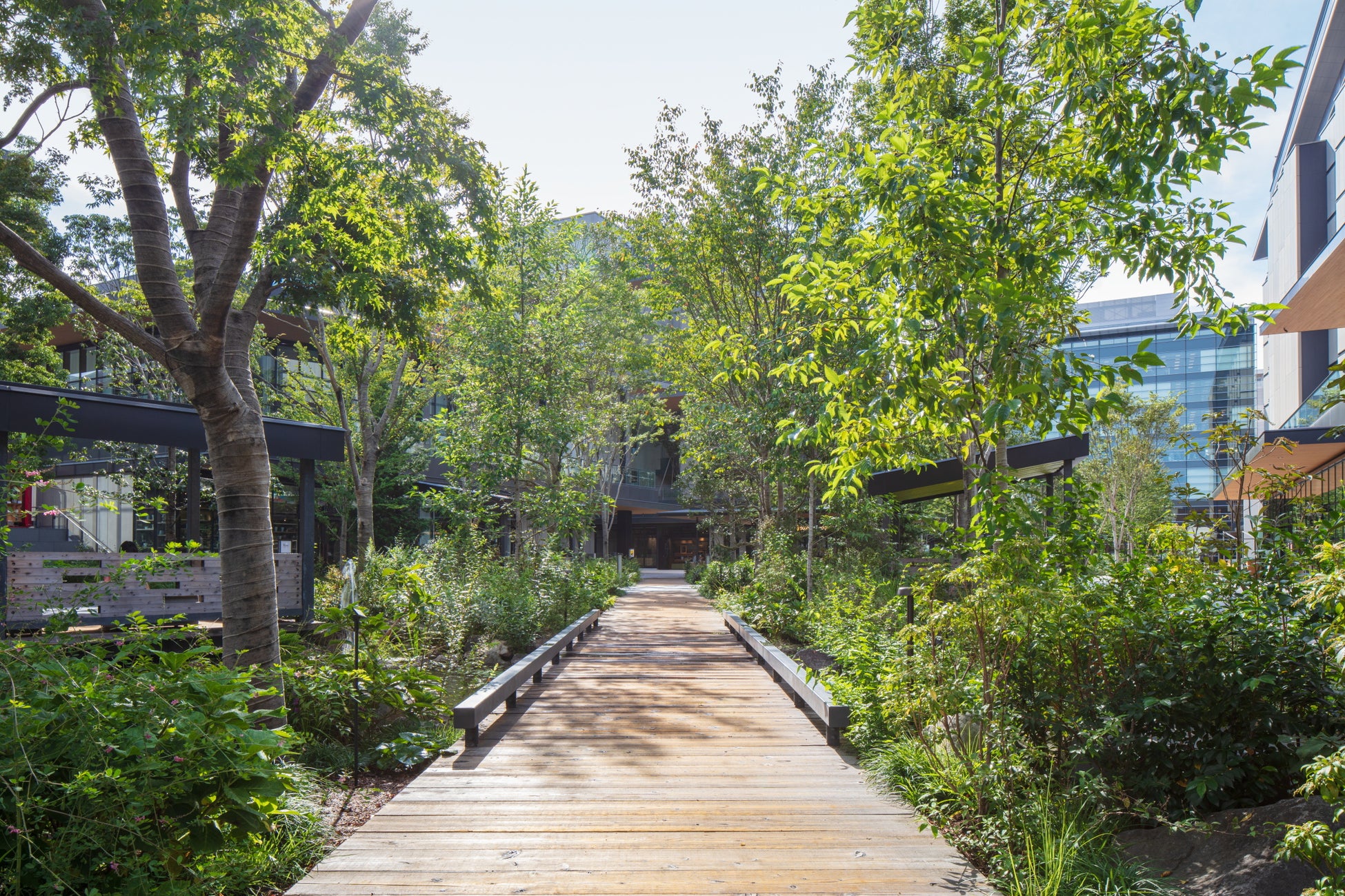 GREEN SPRINGSは、圧倒的な緑と水に囲まれた約1haの広場に各施設が面し、緑豊かな屋外とつながる縁側空間が設けられている点や、玉川上水のせせらぎを再生した「カスケード」のほか、多摩川の湾処環境を再現した「ビオトープ」が子どもたちにとって地域の環境を学べるフィールドとなっている点を評価いただきました。
