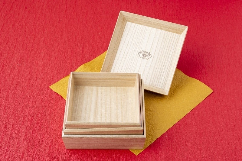 大中小の三段式で、入れ子にしてコンパクトに収納できる桐の重箱。