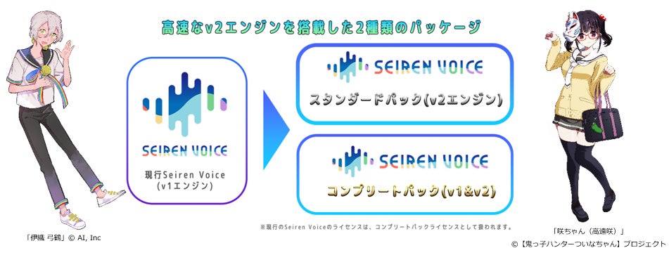 v2音声ライブラリに対応した「Seiren Voice」では、音声ライブラリv1とv2を両方利用できる「Seiren Voice コンプリートパック (v1&v2)」(価格:17,600円)とv2のみが利用可能な「Seiren Voice スタンダードパック (v2)」(価格:14,300円)を販売します。