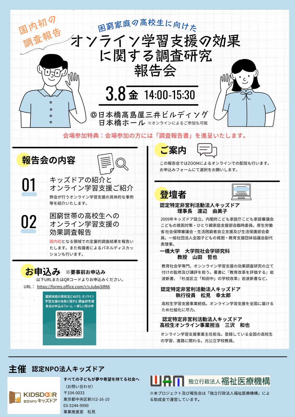 ※本プロジェクトおよび報告会は、「独立行政法人福祉医療機構」による助成金で運営しています。