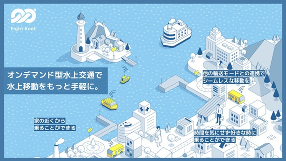 本社を堺市の港湾部に置く株式会社エイトノットは、ロボティクスとAIによる自動航行EV船やオンデマンド型水上輸送システムの開発を行っています。