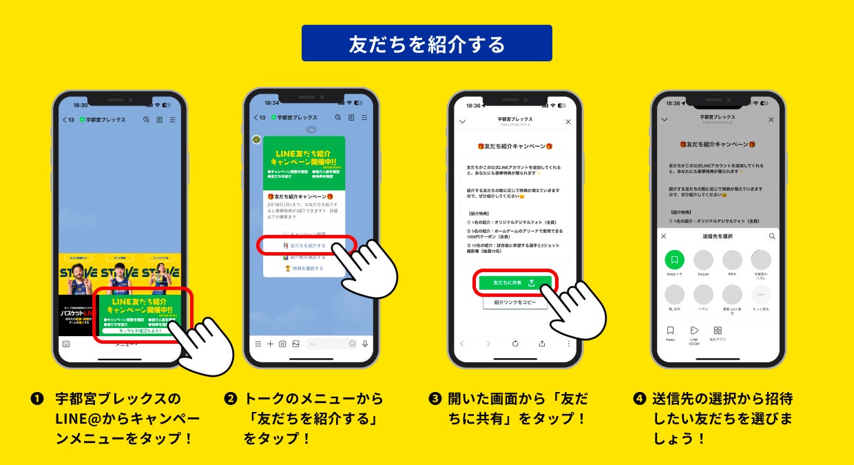 今回の取り組みはブレックスがファンとの繋がりを強化することを目的に、公式LINEアカウントの紹介キャンペーンを実施します。紹介方法については宇都宮ブレックスのLINE公式アカウントよりアナウンスいたします。