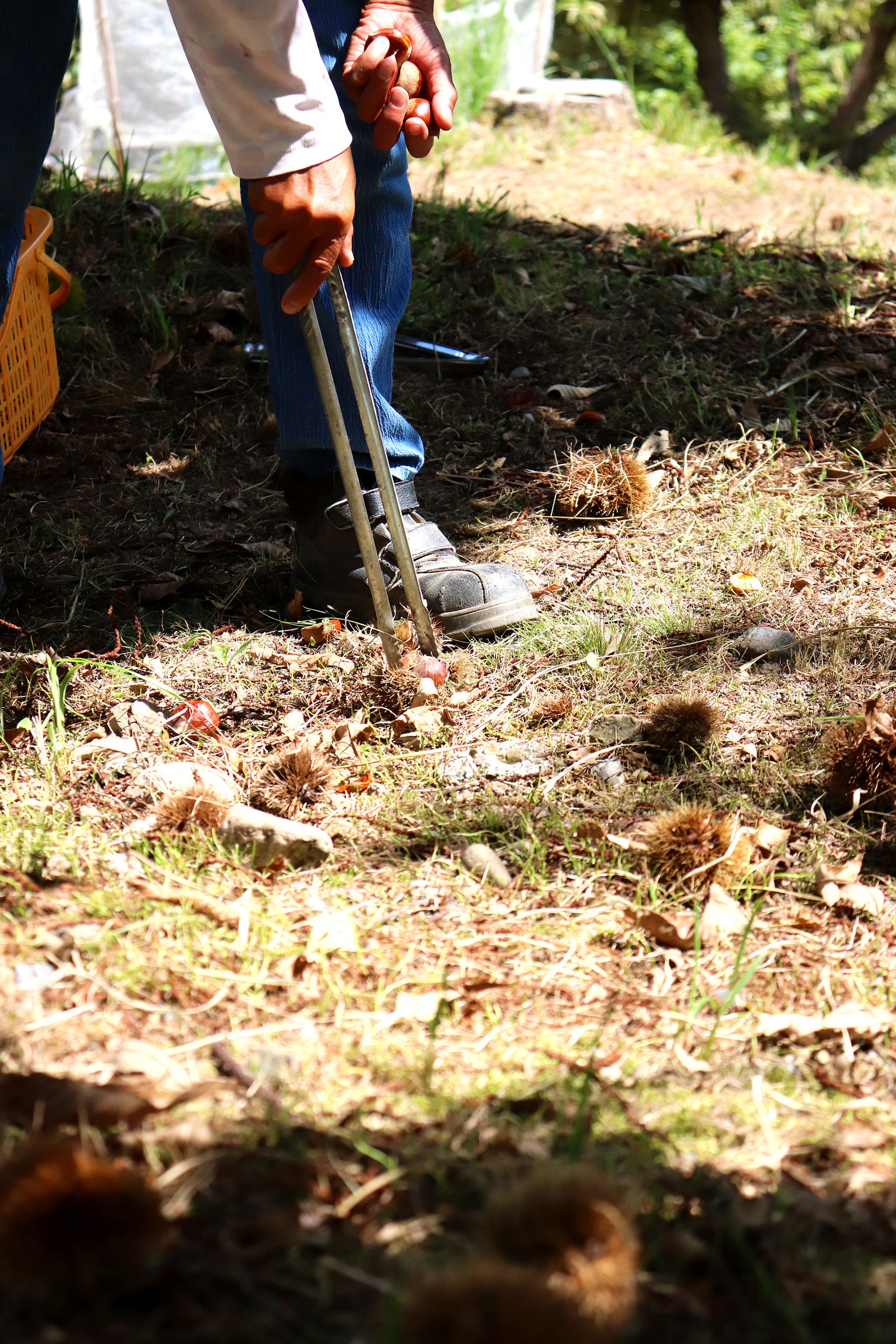 収穫→イガ剥き→選別→出荷までを自社で手作業で行っております。