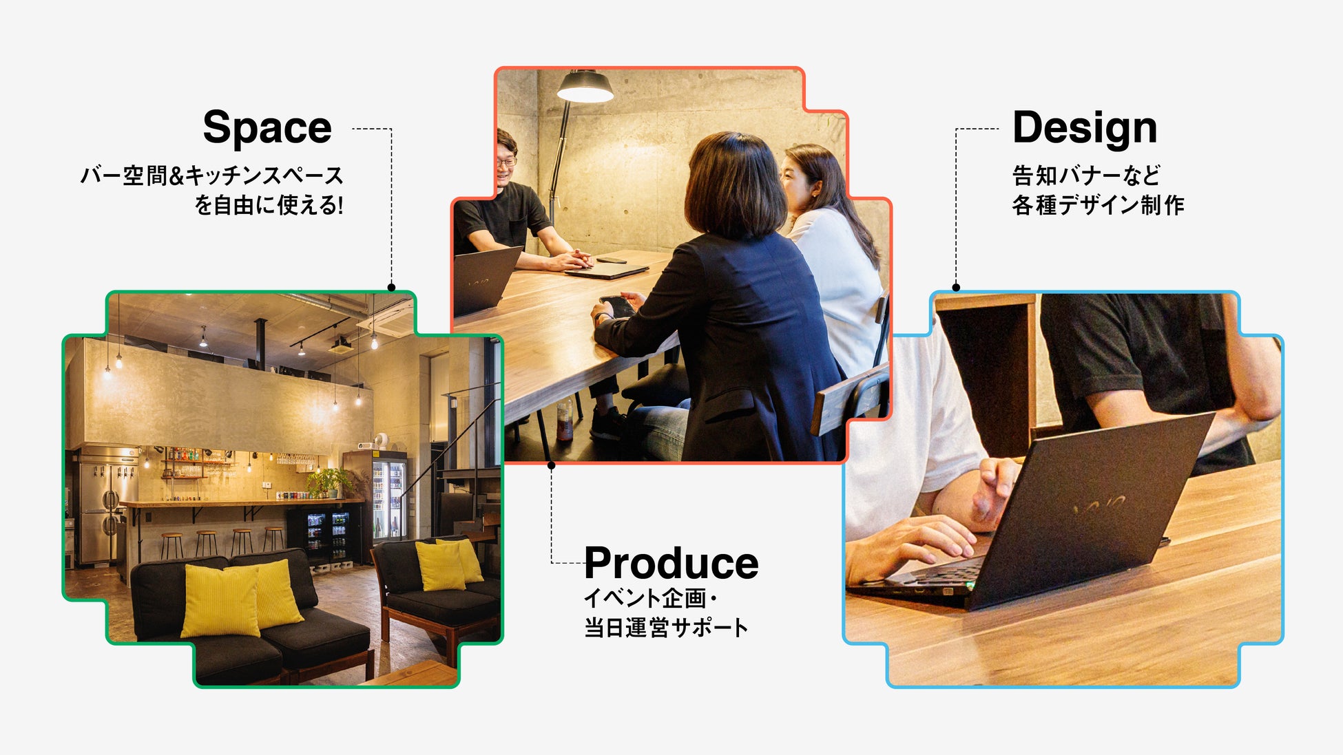 ●場所代 無料! ●企画・当日運営サポート ●イベント告知画像などの制作・提供 |