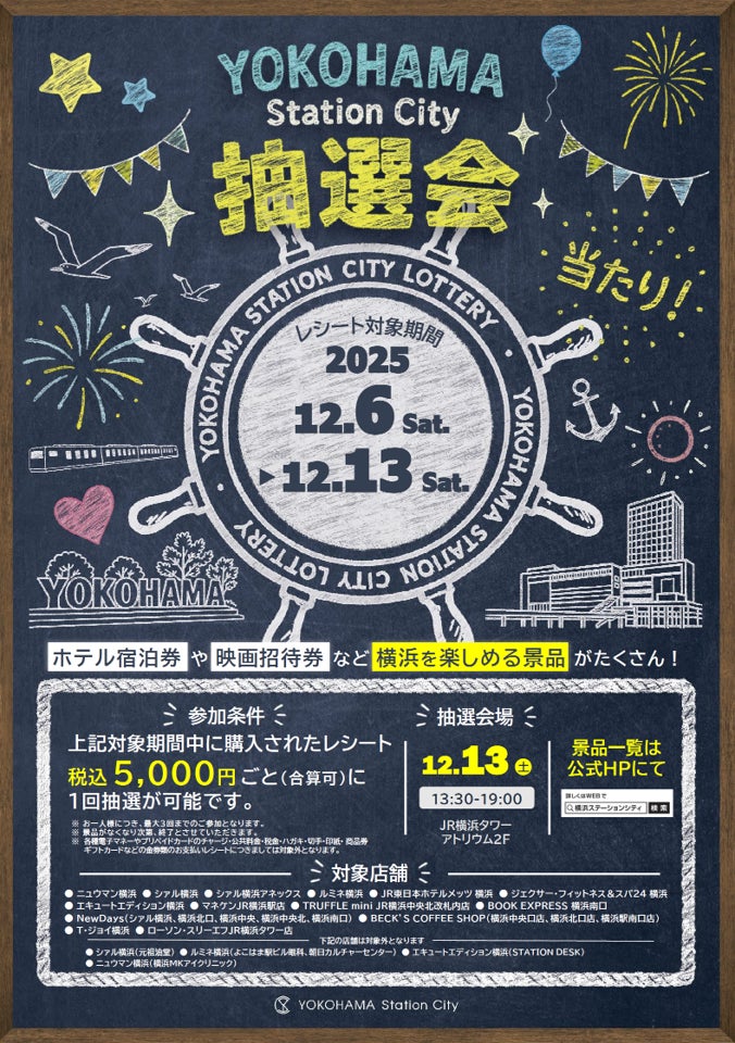 抽選会場:2025年12月13日(土) 13:30~19:00 JR横浜タワー アトリウム2階(JR横浜駅西口)