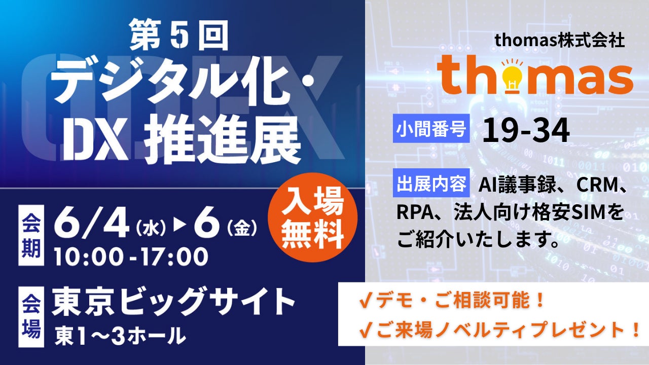 thomas株式会社、「第5回 デジタル化・DX推進展(ODEX)」内「社内業務効率化EXPO」に出展!業務効率化を支援するDXソリューションを紹介