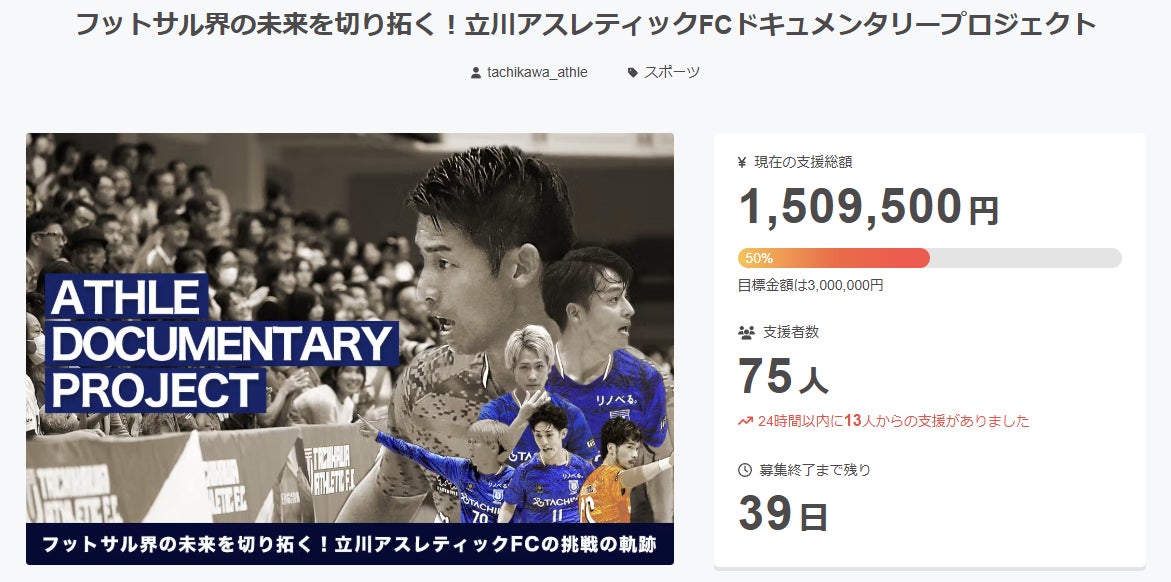 Fリーグに所属する立川アスレティックFCは「アスレドキュメンタリープロジェクト」を立ち上げました。