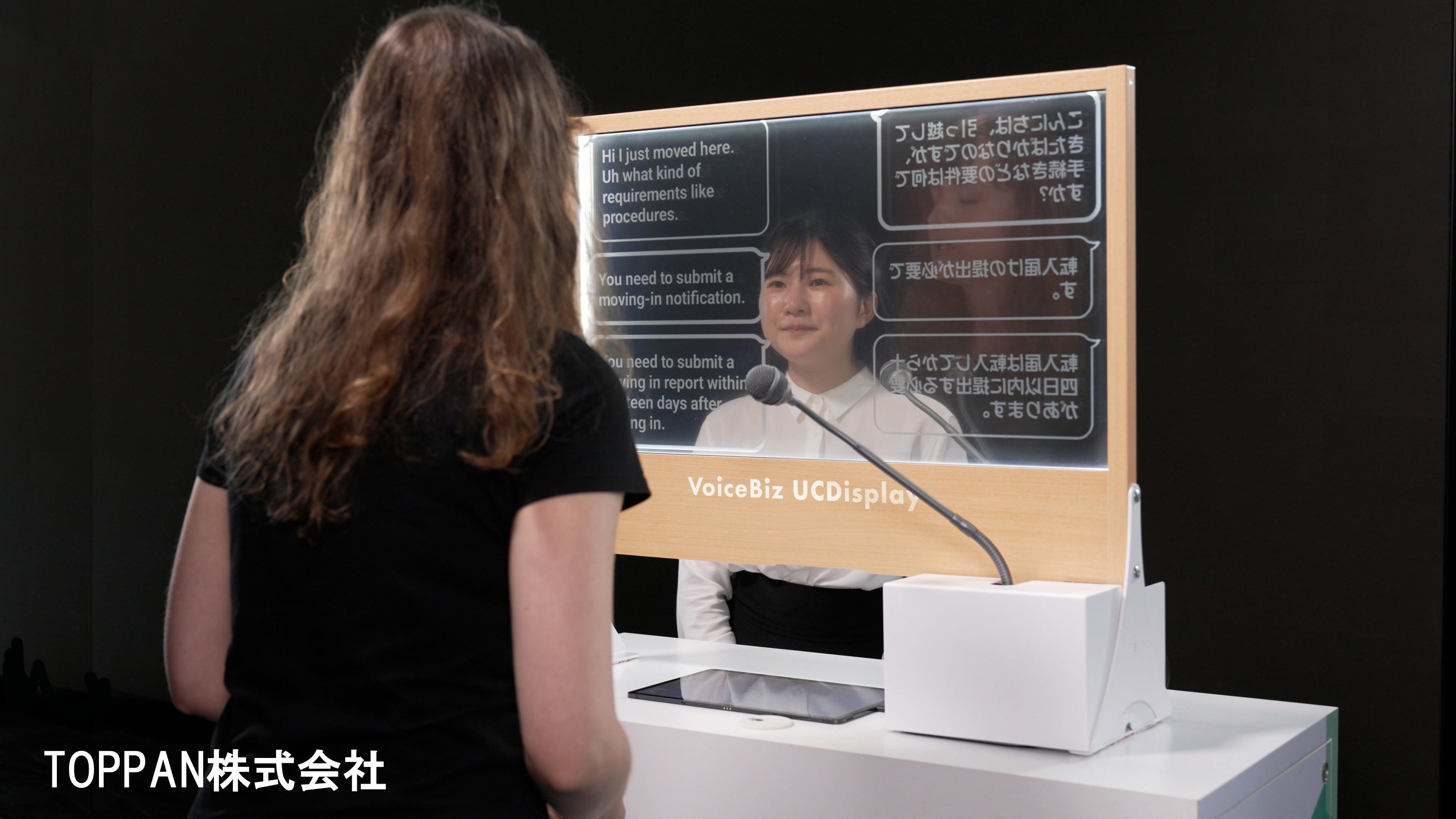 2月1日より、軽井沢PSPのインフォメーションセンターにTOPPAN株式会社が提供する透明ディスプレイを活用した対面型の翻訳機『VoiceBiz® UCDisplay®』を設置いたします。英語をはじめ中国語、タイ語など12言語に対応し、話した内容がリアルタイムで透明ディスプレイに表示されることから、相手の顔を見ながら自然な会話が可能になります。また、キーボードに入力することでも対応できますので、発話が難しい方とのコミュニケーションにも効果的です。