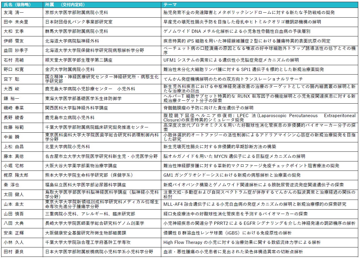 【小児疾患の研究の発展を支援】研究助成金9/2~申請受付開始 一般枠は最大300万円、若手枠(40歳以下)は最大100万円の助成