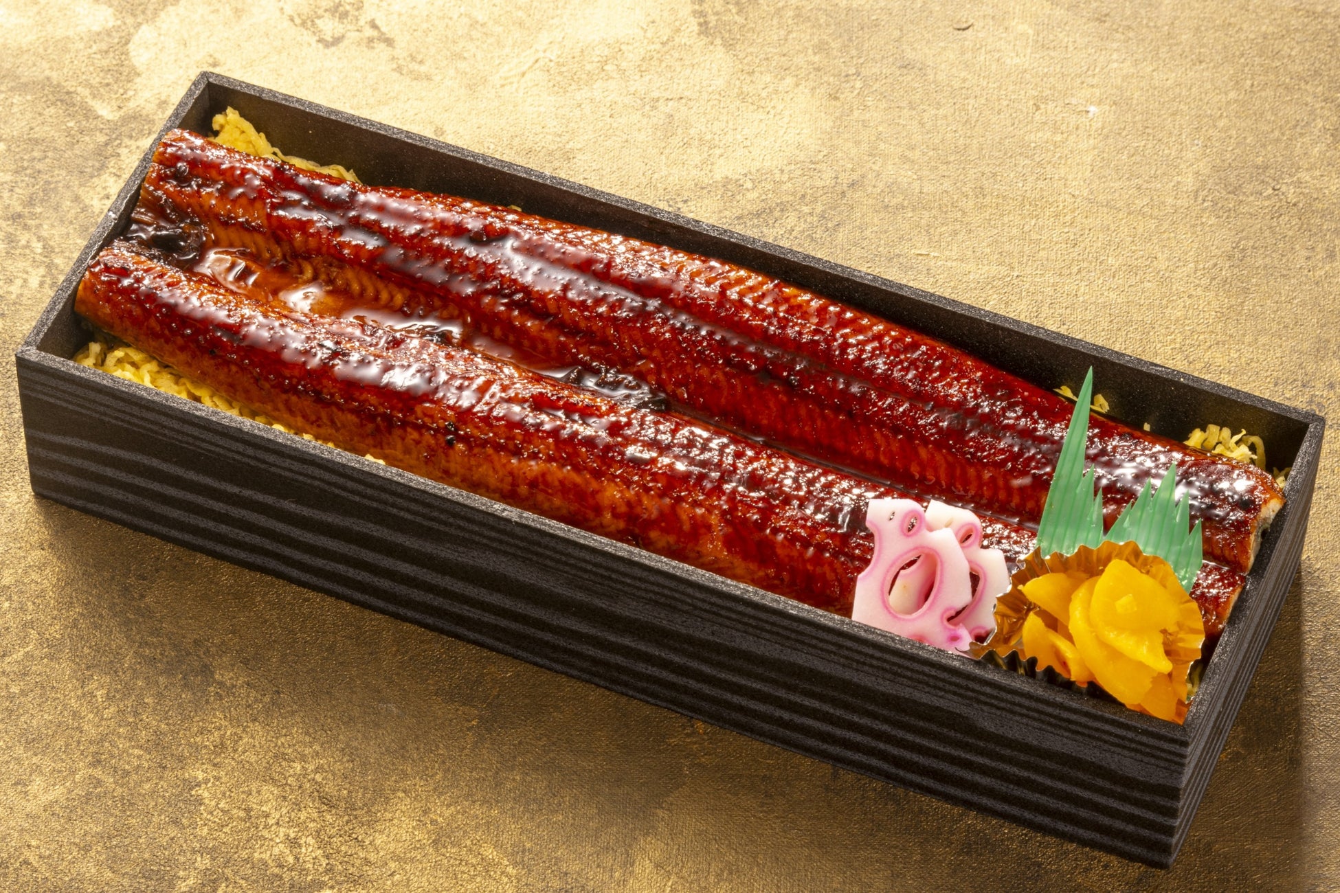 うなぎ一本(約230g)、錦糸卵、梅花蓮根、香の物、鰻タレ、山椒