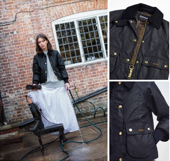 新作のCropped Beadnell(クロップド ビードネル)はウェストシェイプを効かせたボディに、長いリブ袖を合わせることで女性らしい華奢なシルエットを演出。程よい光沢感のあるワックスコットンとゴールドのメタルパーツが上品さをプラスしています。
