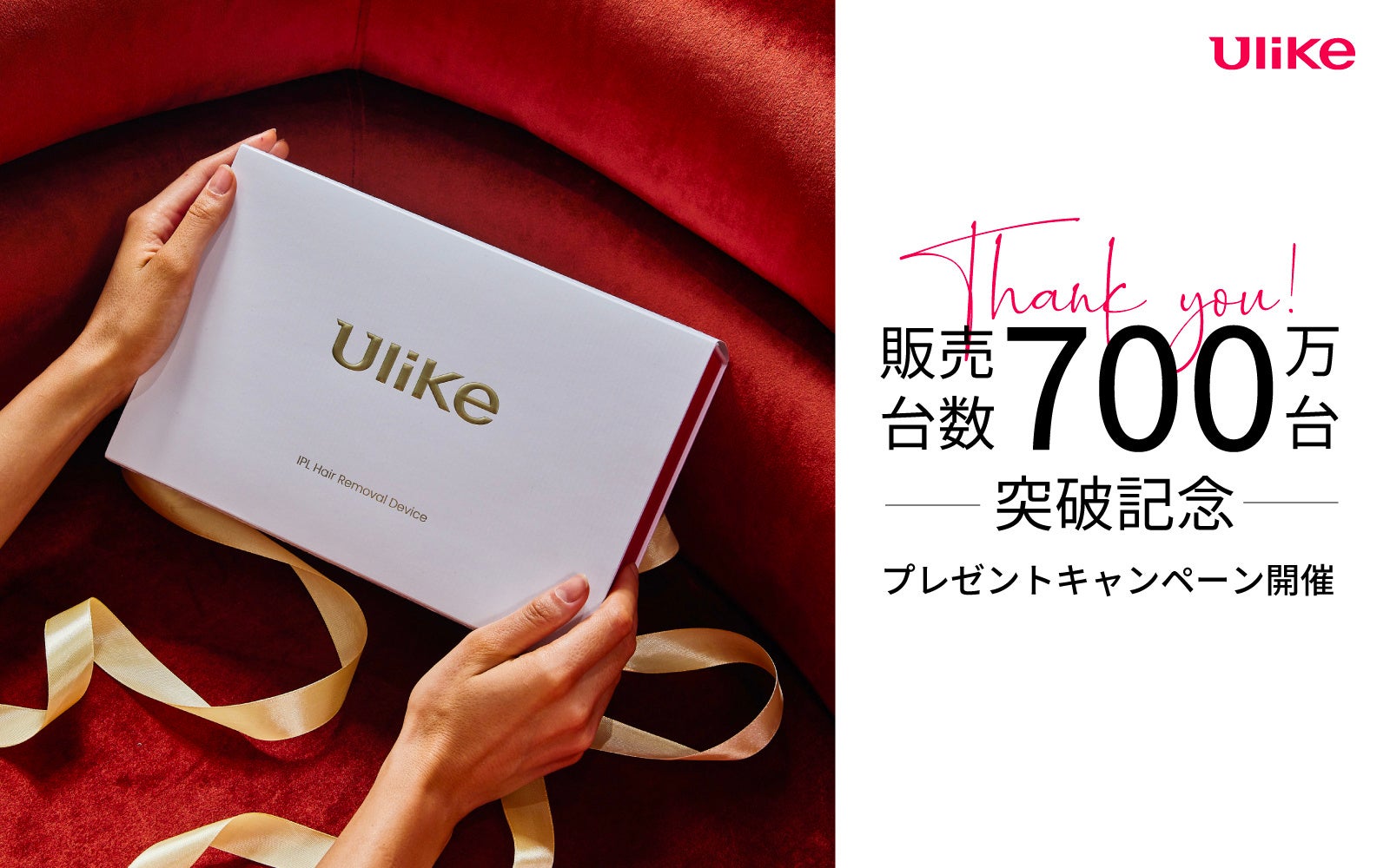 家庭用美容機器メーカー「ユーライクジャパン株式会社」(本社:東京都港区)が展開する、光美容器ブランド「Ulike(ユーライク)」の商品が、グローバルにおける累計販売台数700万台(*2)を突破いたしました。また「Ulike」は、国際市場調査会社「フロスト&サリバン」による調査の結果、2023年の光美容器の小売販売台数において、世界NO.1光美容器ブランド(*1)として認可を受け、世界中で愛され、信頼されるブランドとなりました。