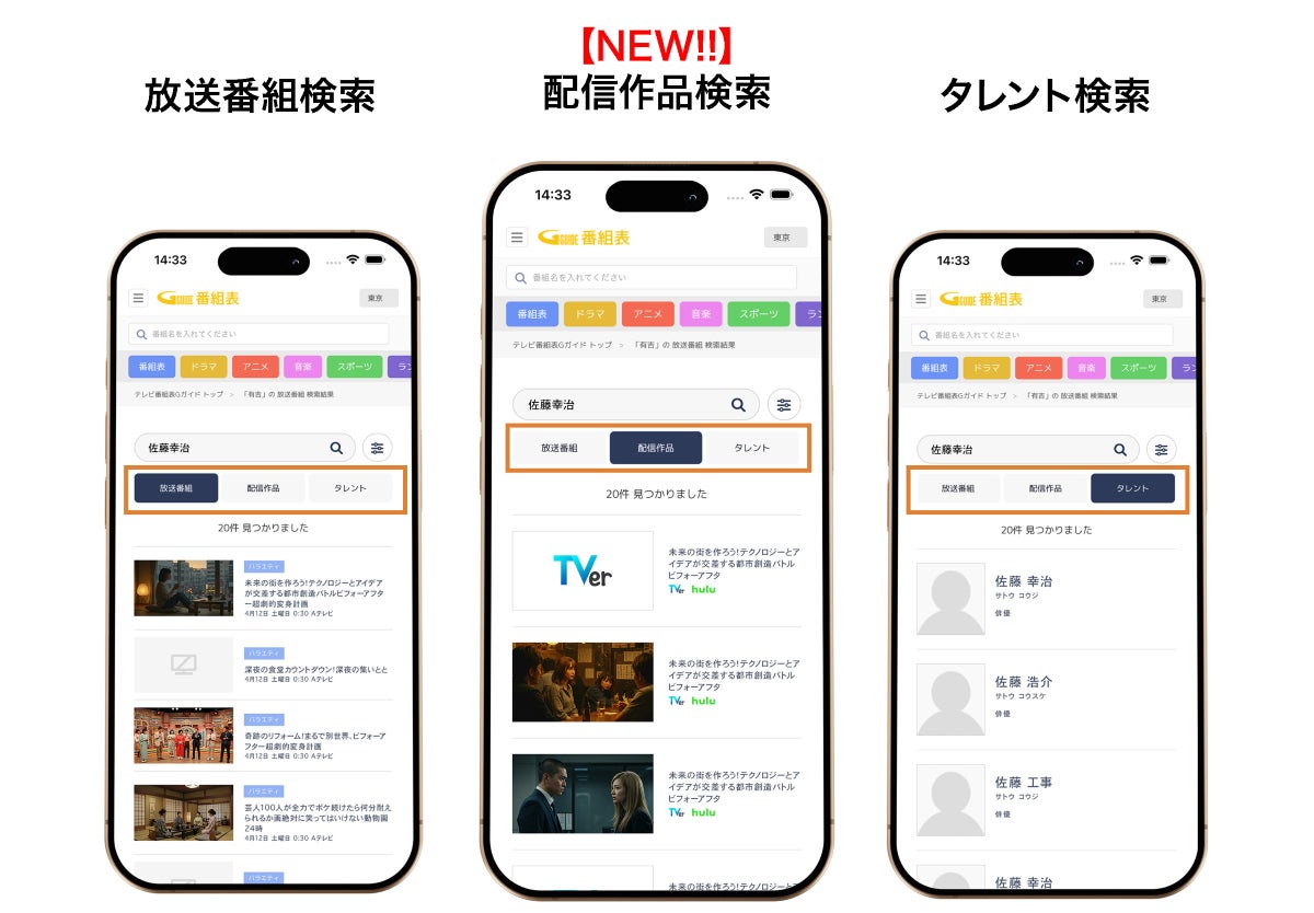 「放送番組」・「配信コンテンツ」・「タレント」、一度のキーワードで一括検索! 「番組表.Gガイド」検索機能を大幅アップデート