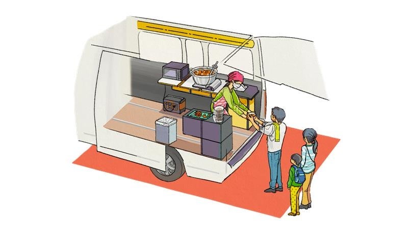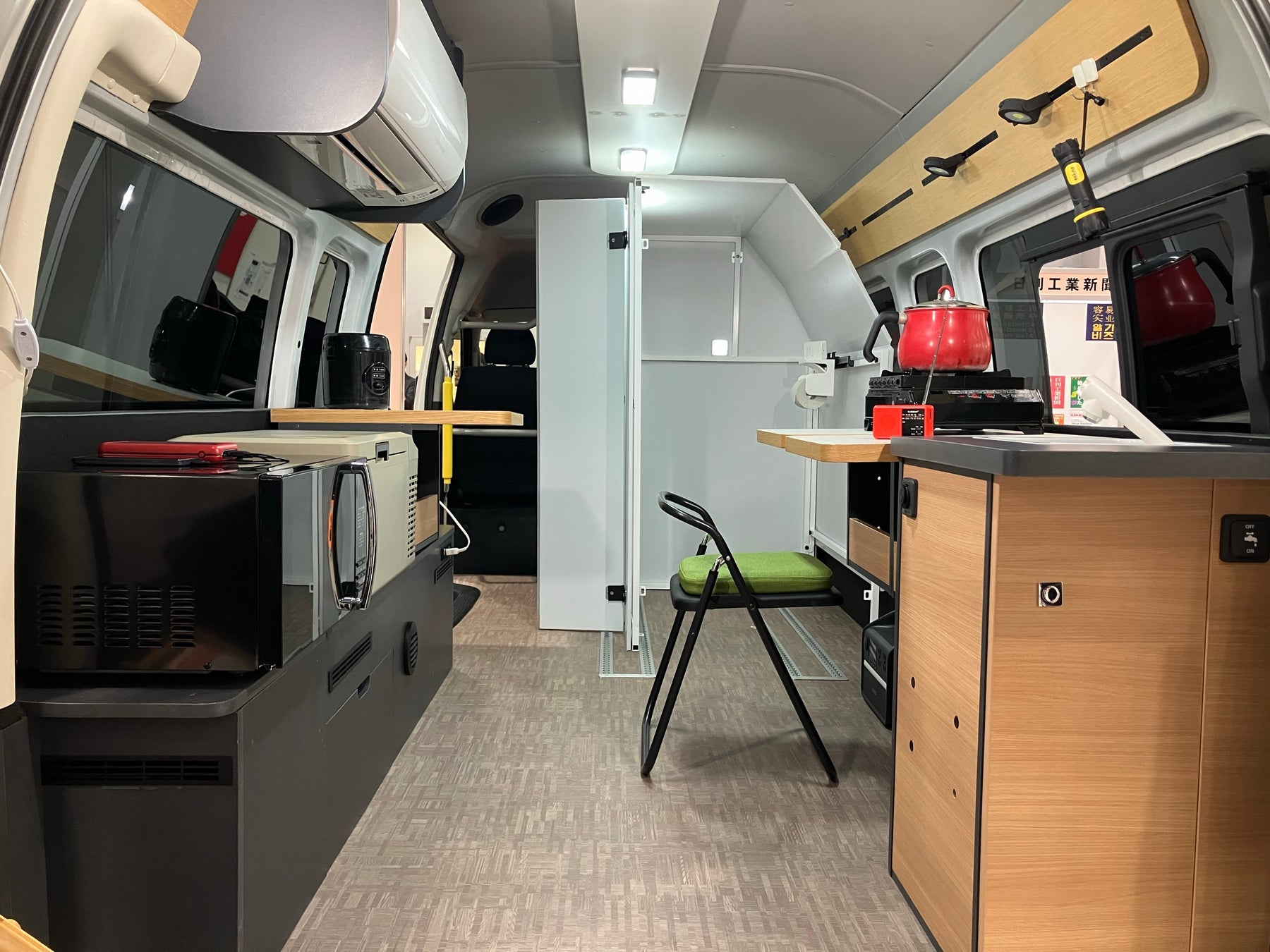 一台の車両の中をシートや家具を組み替えて、様々な目的で活用できるのが特長のマルモビ。イベント出展や災害支援での炊き出しなどにも活躍する「キッチンカーモード」も新たに加わりました。