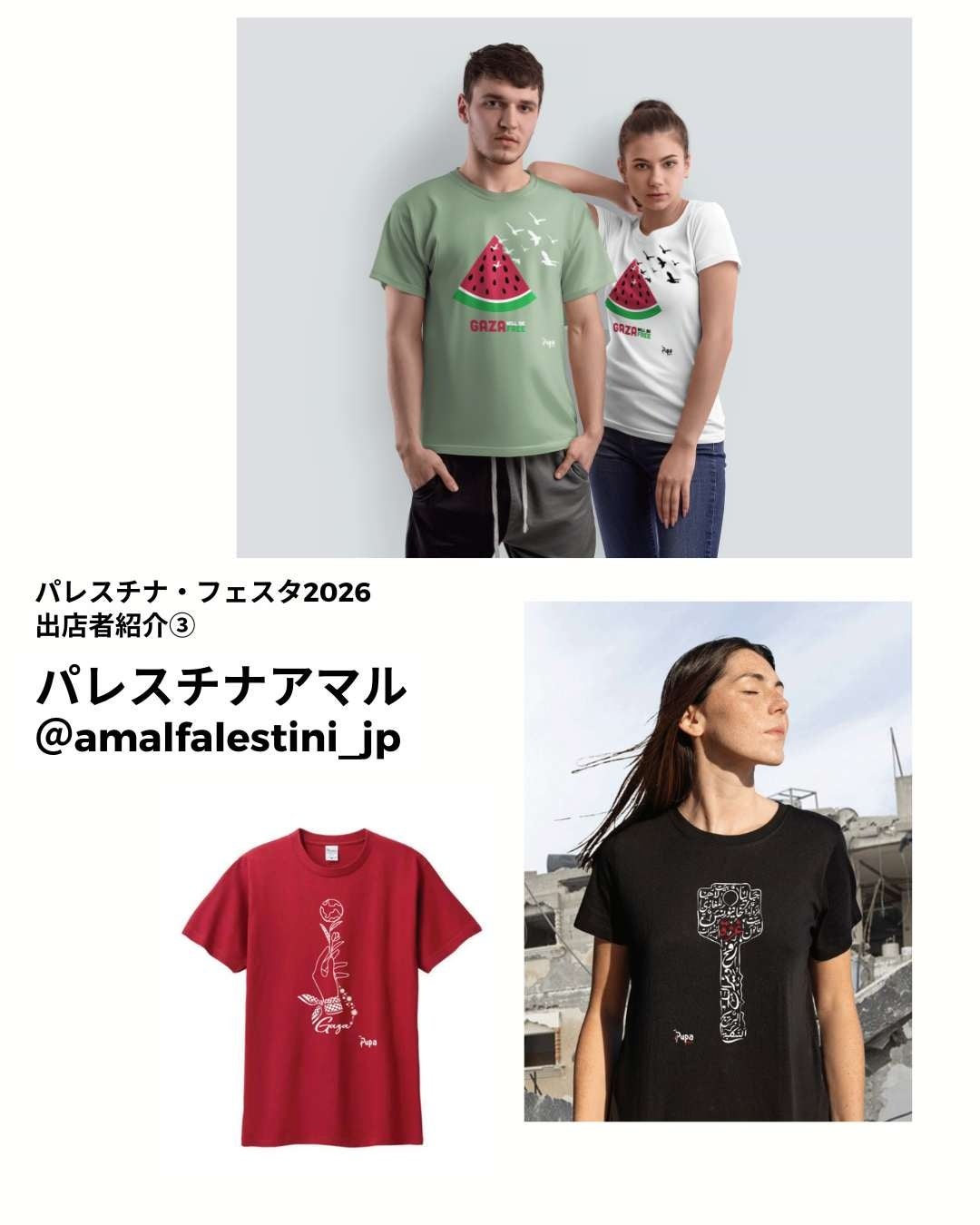ガザのデザイナーROZANによるデザインTシャツを販売し