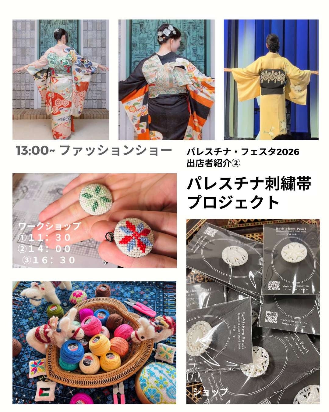 13:00 パレスチナ刺繍帯ファッションショー @palestinian_embroidery_obi